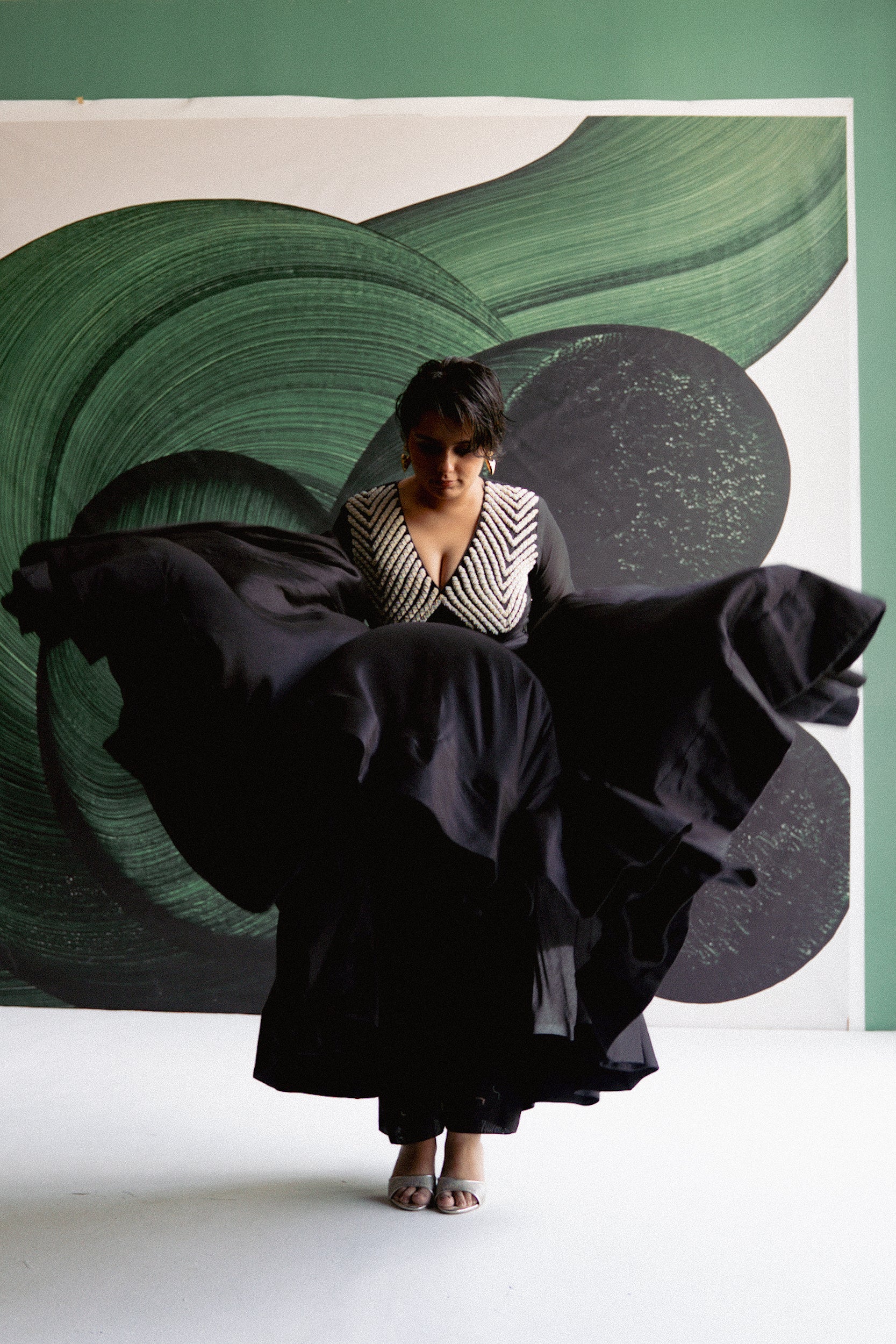The oh so gorgeous Gauhar Khan wears our bespoke Green Blazer Lehenga for her Filmfare OTT awards outing. Not only did she slay in our creation, she won at the awards as well.